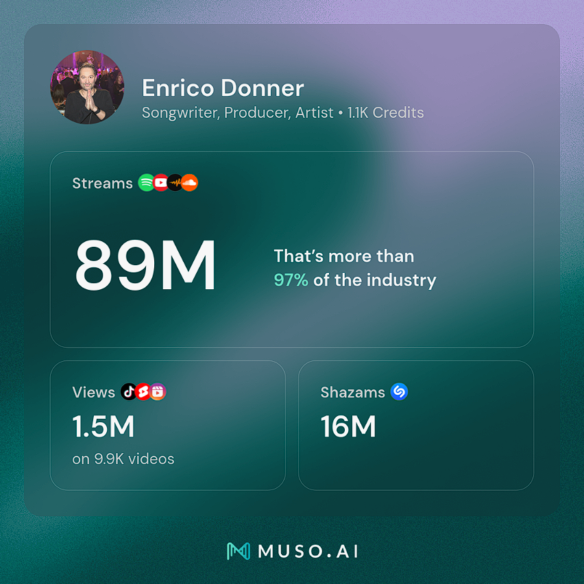 Enrico has also been writing music for and with many other artists, including Donner & Hornbostel, The Sura Quintet, Rey Salinero, Arrojas, Baghira, Club Camarillo, Diario, Aquarius, Blue Wave, Dr Whait, Mephia, Spiridion, Oliver Bäckström, Minidipp, Goldtrumpet, Tony Donner, Nick Marasciulo and many others...